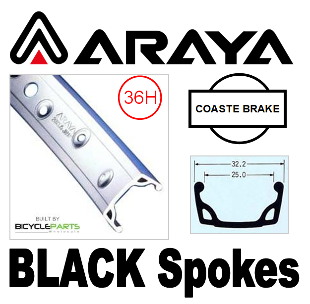 WHEEL - 18" Araya 7X S/w 36H M/e Silver Rim, 3 SPEED INTERNAL COASTER 3/8 Nutted (117mm OLD) Loose Ball Sturmey Silver Hub, Mach1 BLACK Spokes