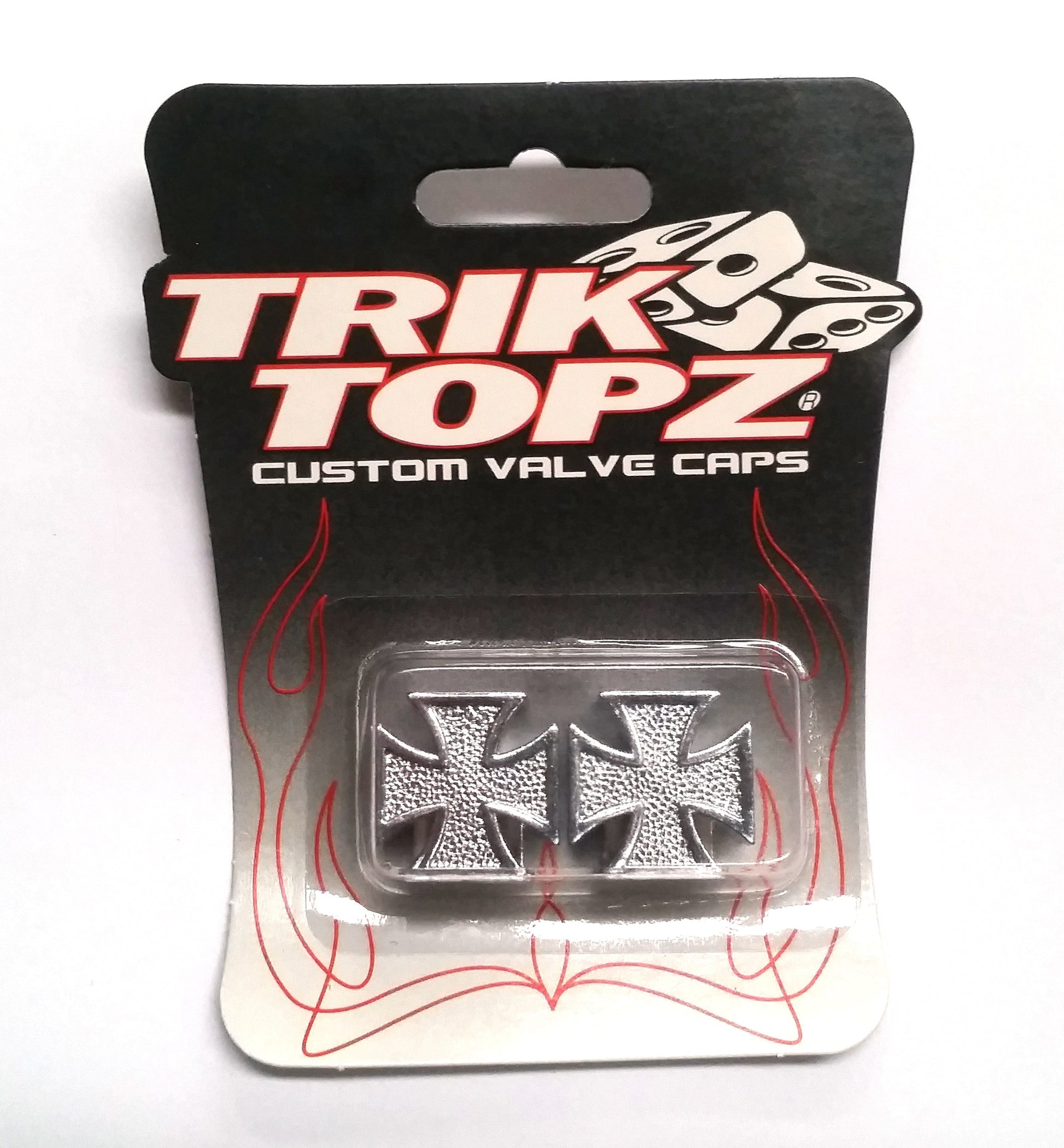 Valve Cap - IRON CROSS,Trik Topz, Card of 2, CHROME