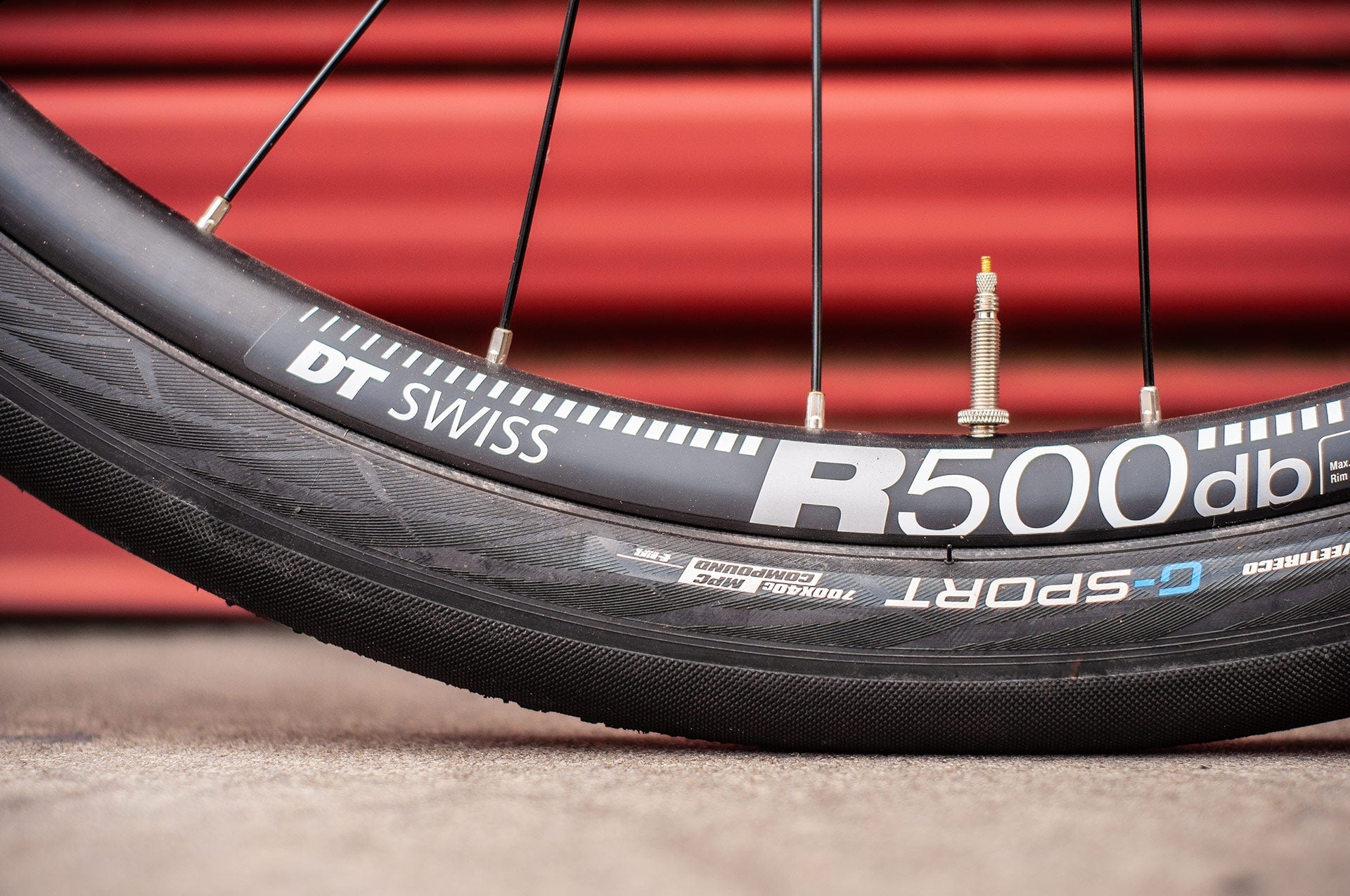 700c DT SWISS R-500-Disc rims, 28 hole 11 speed disc hubs with stainless spokes