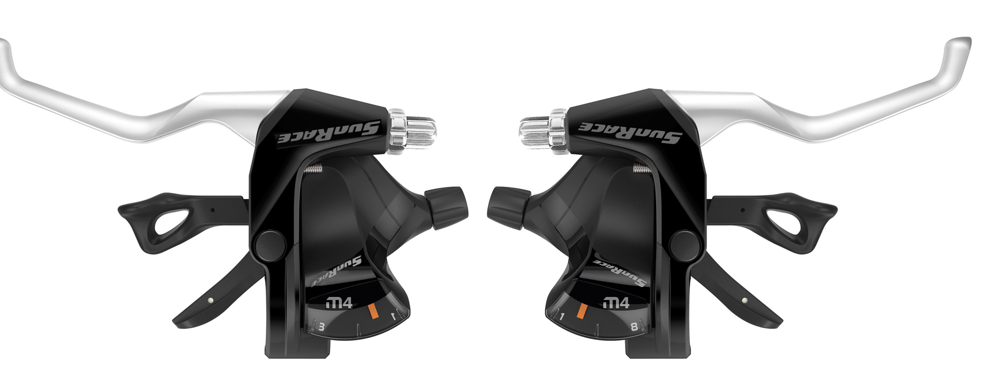 BRAKE & SHIFTER INTEGRATED SET - Right Hand 8 Speed, Left Hand 3 Speed, Thumb Tap Dual Trigger, Black WITH Silver Brake Lever nt