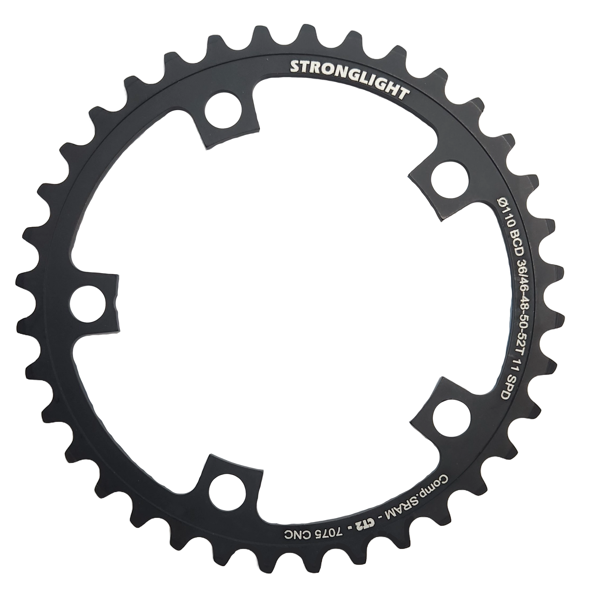 CHAINRING - ROAD "STRONGLIGHT", 36T, 7075 CNC Black CT2 - 110 BCD, 5 Hole for 11 Spd for SRAM (Not E-Tap)