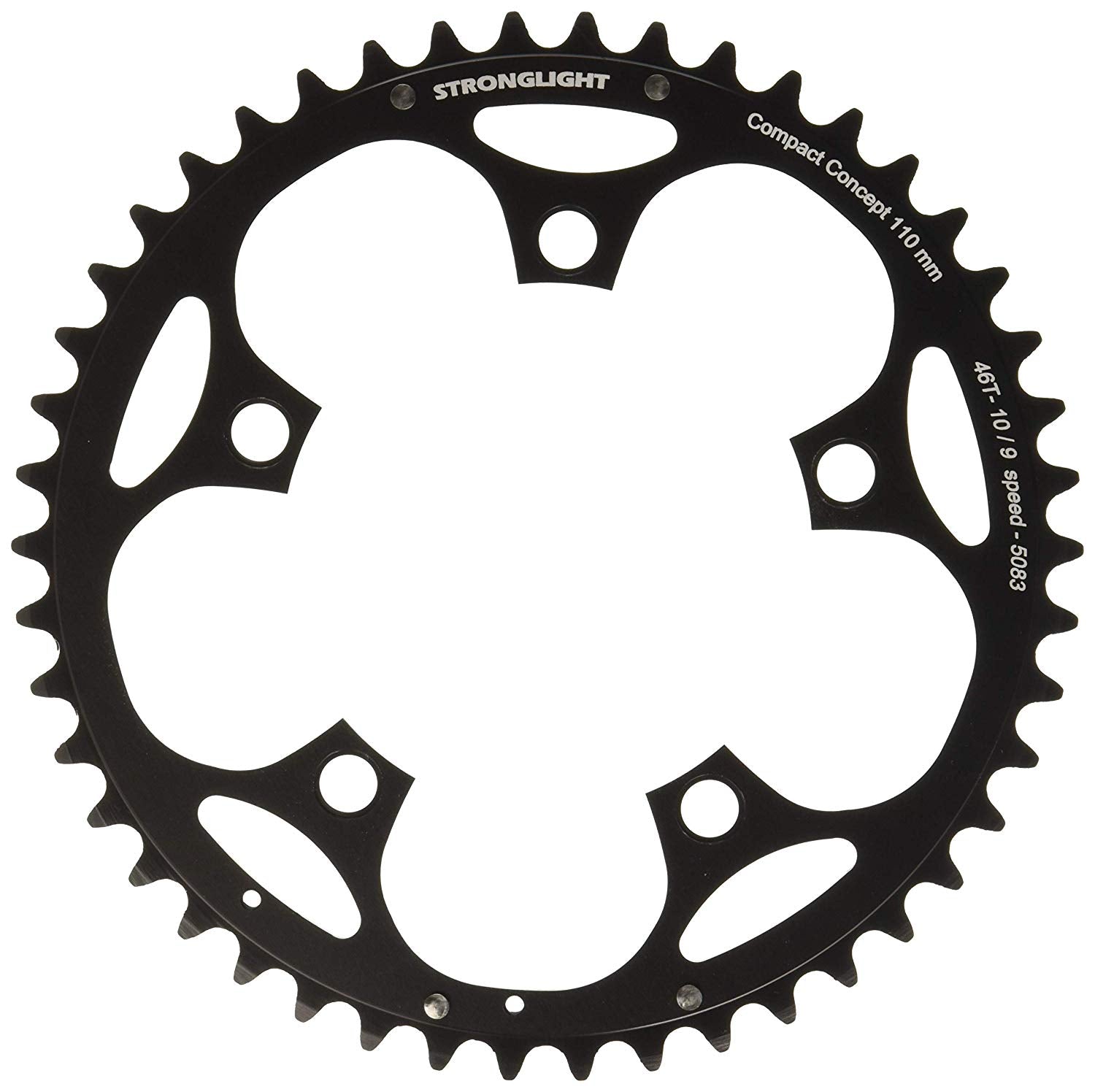 CHAINRING - ROAD "STRONGLIGHT", 46T, 5083 Black - 110mm BCD, 5 Hole for 9/10 Spd (Does NOT have Pickup Points)