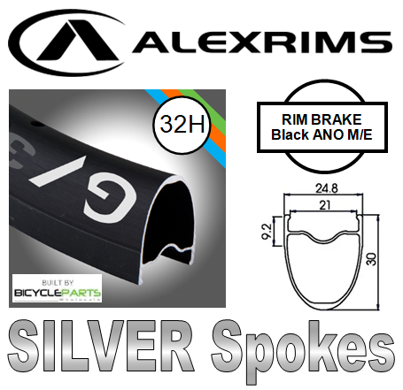 WHEEL - 700C Alex GV30 32H S/j Black Rim, FRONT Nutted (100mm OLD) Sealed Novatec Black Hub, Mach 1 SILVER Spokes
