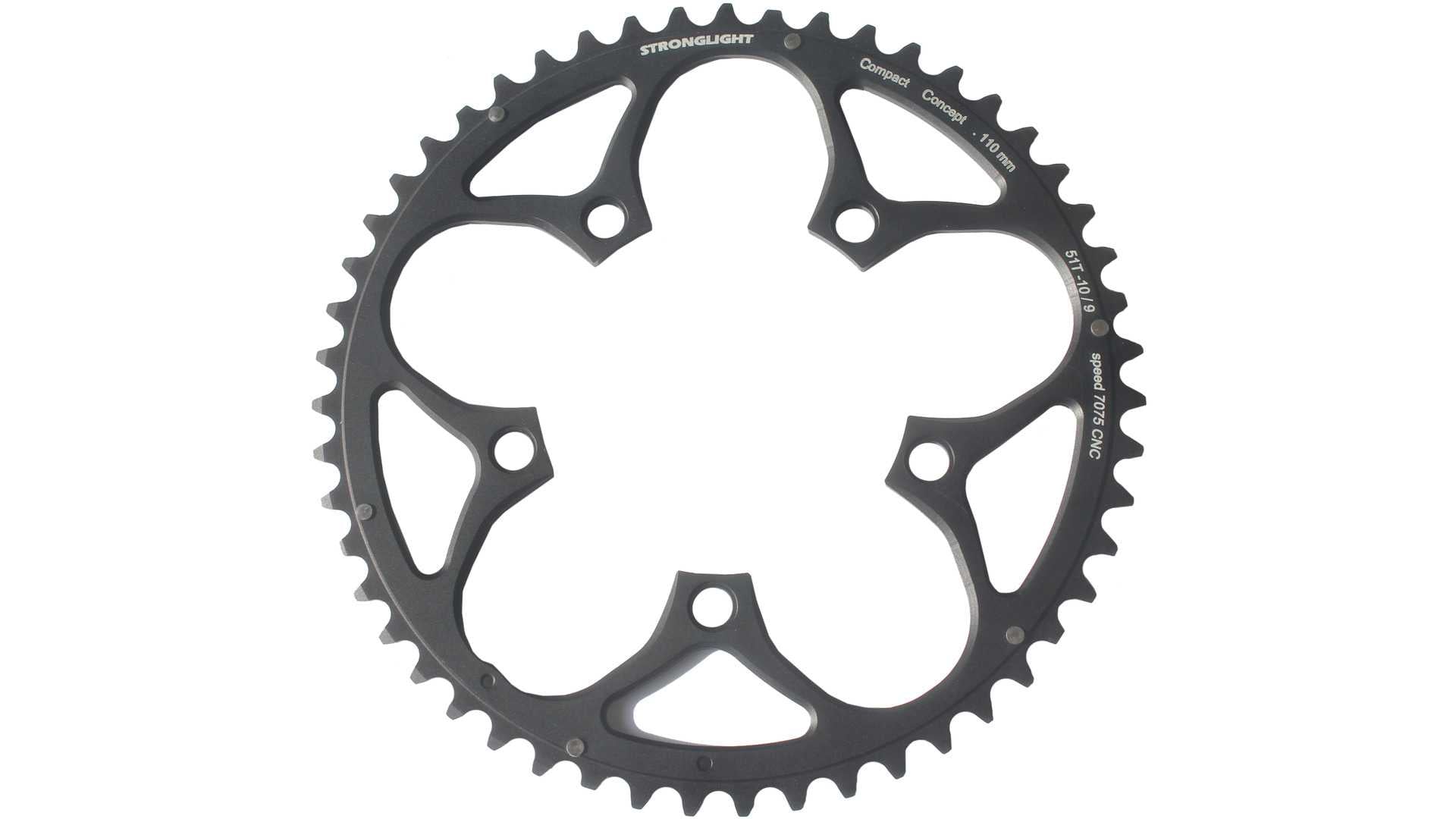 ROAD CHAINRING, STANDARD, TYPE S - 7075 CNC, BLACK, 9/10, 110 BCD, Outer, 52T, 5 arms "STRONGLIGHT"