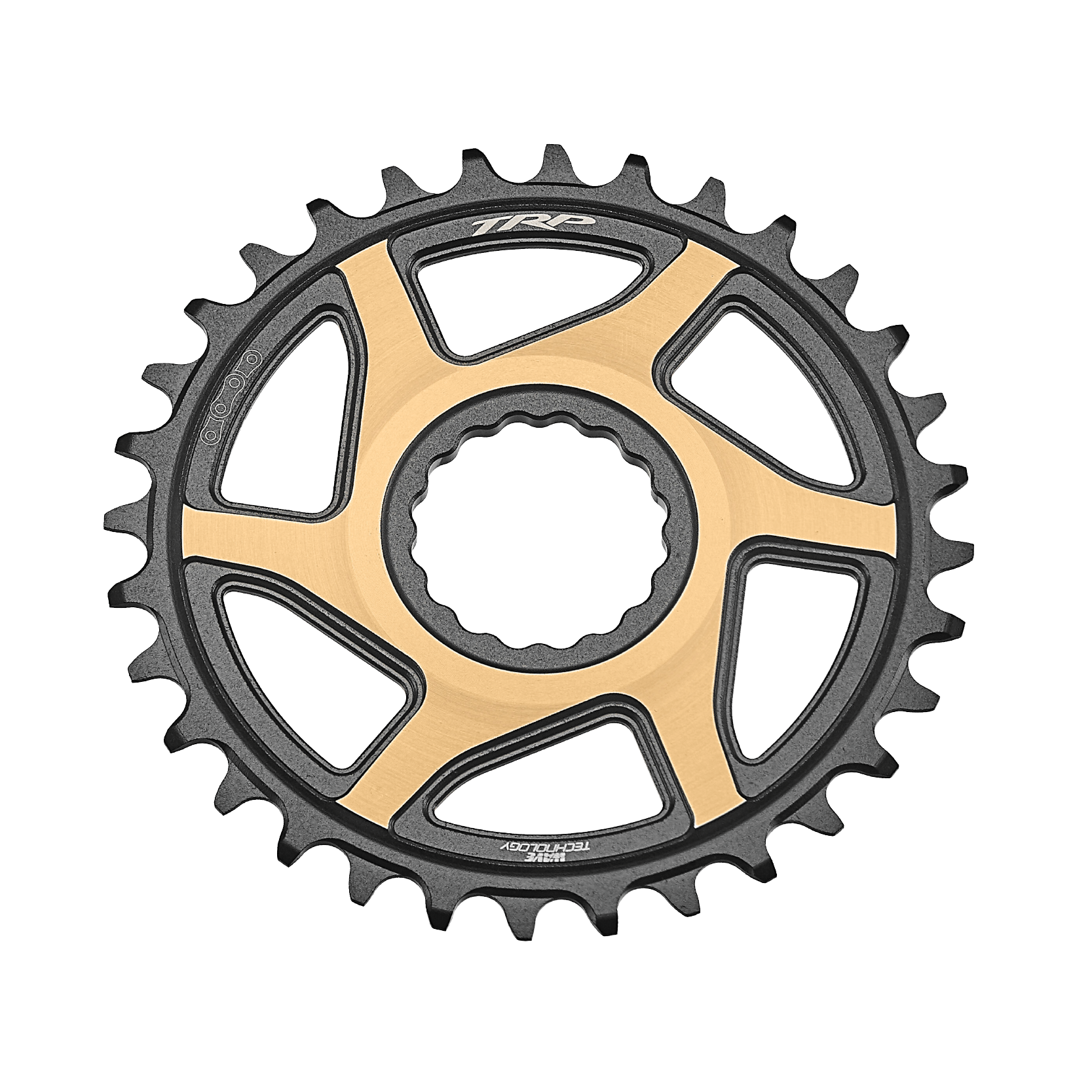 TRP Chainring CR-M9050, 12 speed 32T Boost 3mm offset Chainring Cinch Interface, Duotone (Sandblasted Black / Gold)